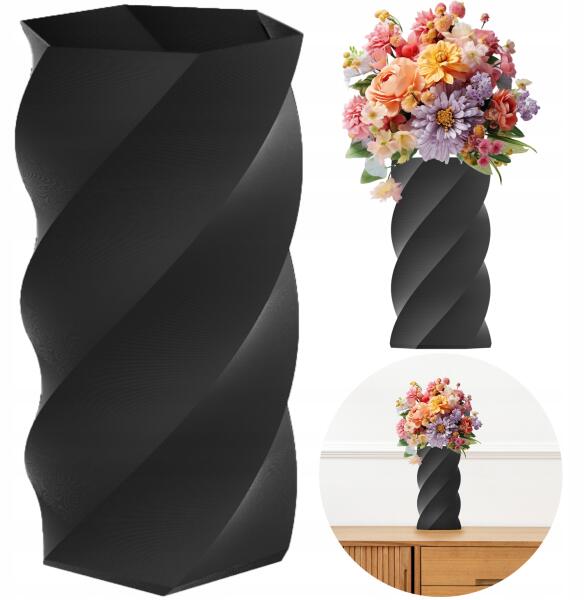 Virág Váza Törhetetlen Modern Spirális Hexagon Fekete (WAZ000001-B)ALLEGRO